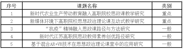 日前,江苏省高校思想政治理论课教学指导委员会公布�2020年度江苏省高职高专院校思想政治理论课教学研究项目立项名单。我院教师申报的5项课题获准立项,其中重点项目2项、一般项�3项,立项数量居全省第一�