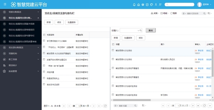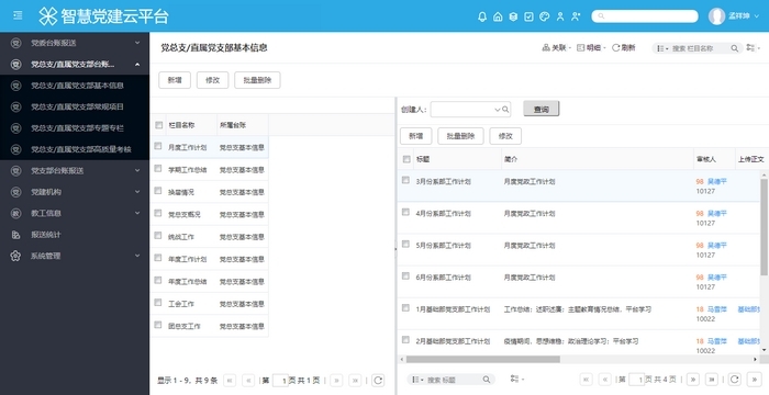 江苏安全技术职业学院党建云平台是立足于“大数据、云服务、影响力”,主动适应信息化的机遇和挑战,自主研发的。通过运用互联网、大数据等技术手段实现党建工作的数字化、信息化、智能化,为基层各级党组织在网上搭建党建台账管理平台、信息平台、数据统计平台、典型经验交流窗口、基层党组织服务平台、党建考核平台,从而更好地推动基层党建工作创新发展。结合学院实际,江苏安全技术职业学院党建云平台开设了基本信息、常规项目、专题专栏和高质量考核四大版块。通过党建云平台,各级党组织可以实现终端日常的系统运行、活动管理、信息维护等工作,可以开展网上学习交流、党务知识学习。构建起学院党建纵向到底、横向到边的矩阵式全覆盖信息化管理体系,夯实了各基层党组织党建工作主体责任和党组织书记第一责任,搭建起各级党组织和全体党员展示成绩、交流经验的广阔平台,打好了党建工作信息化考核的基础,推进学院党建体系标准化、管理信息化、载体品牌化、服务人性化目标建设�
