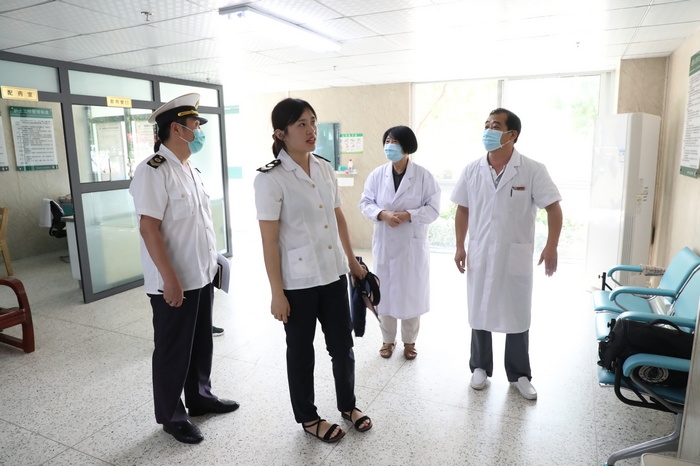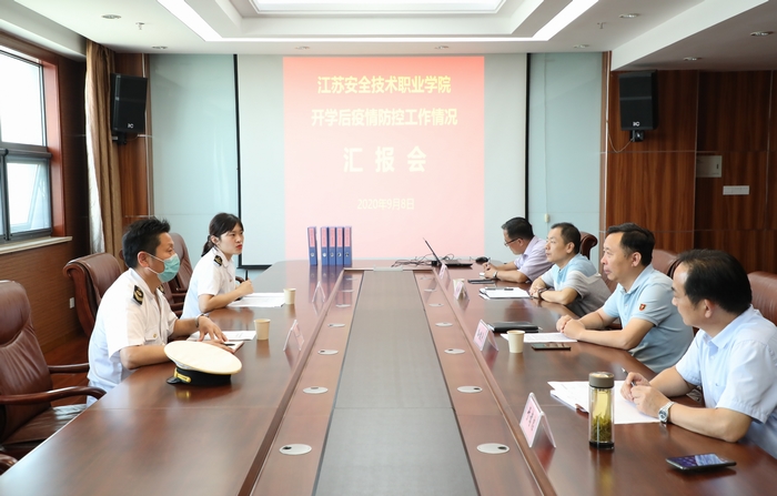 9�8日,徐州市卫生监督所学校卫生处郭永胜主任率队来校,检查开学前后疫情防控工作。党委副书记孙健身向检查组介绍学校疫情防控工作落实情况。有关部门领导陪同检查�