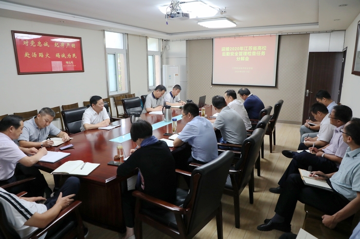 9�10日,院长徐建春主持召开专题会议,对迎接2020年江苏省高校后勤安全管理检查作了全面动员部署。会议详细解读了《江苏省高校后勤安全管理检查评估标准》,并根据评估标准制定下发了后勤安全管理检查任务分解清单。院领导孙健身、吴如根、任国兴、李桂萍出席会议,党政办公室、后勤服务中心、资产办、安全保卫处、教务处、学工处、财务处等有关部门负责同志参加会议�