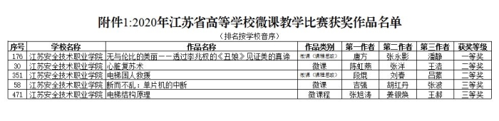 �2020年江苏省高等学校微课教学比赛中,我院教师的作品分别荣获一等奖1项,二等�2项,三等�2项。此次比赛实现了我院在省高等学校微课教学比赛中一等奖零的突破�