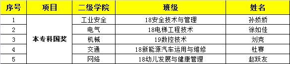 我院2020-2021学年专科国家奖学金评选工作在省学生资助管理中心的统一要求和相关文件的指导下完成,现将5位获奖学生名单公示如下:
