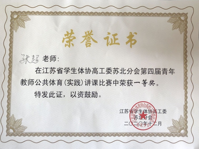 12?日,由江苏省学生体育协会高校工作委员会举办的苏北高校第四届青年教师公共体育(实践)讲课比赛落下帷幕。基础课教学部张超老师代表我院参赛,荣获一等奖?/span>