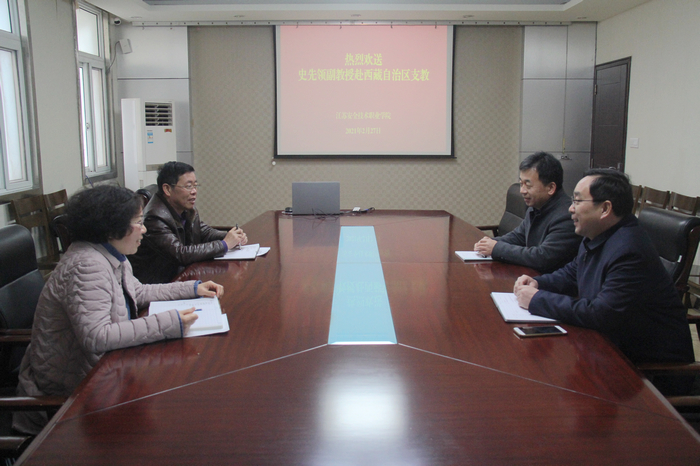 2�27日,学院在贾汪校区二楼西会议室召开欢送史先领副教授赴西藏支教座谈会。徐建春院长、李桂萍副院长、工业安全与职业健康学院李志浩、援藏老师史先领副教授及部分教职工参加座谈会�