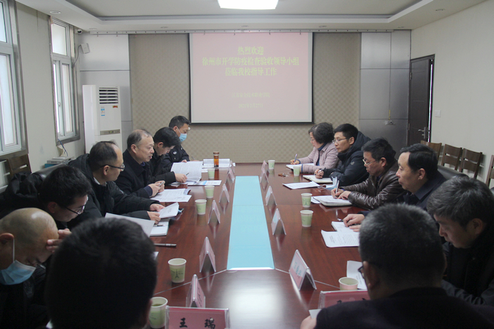 2�27日,徐州市教育局副局长徐志、市应急管理局副局长李海波率市学校开学防疫检查验收第九组来校检查,对我院开学前疫情防控工作进行督查验收。学院领导徐建春、孙健身、吴如根、任国兴、李桂萍,相关部门负责人陪同检查�