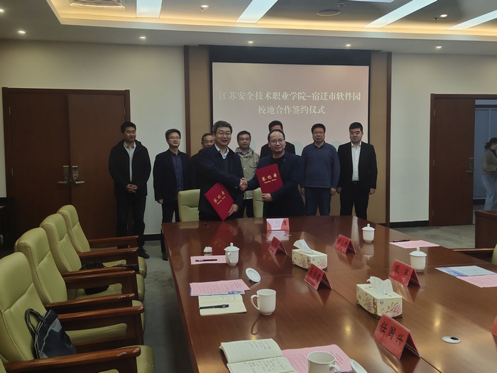 结束企业考察后,双方进行了洽谈交流。费新力首先介绍了园区企业目前运行整体情况较好,希望与学校在产教融合、项目孵化、人才招引等方面进行相关合作。接下来,任国兴对我院的发展历程、专业设置、人才培养等情况做了详细的介绍。并表示,学院有意向加强与园区企业的深度合作,促进校企合作的深度融合。希望校企双方可以进一步开拓思路,深入探索校企共同发展的长效机制,结合企业和市场的需求,创新人才培养模式,找准学校、企业发展的契合点,实现互惠共赢、共同发展。最后,任国兴和园区管委会主任刘松分别代表双方签署校地合作协议�