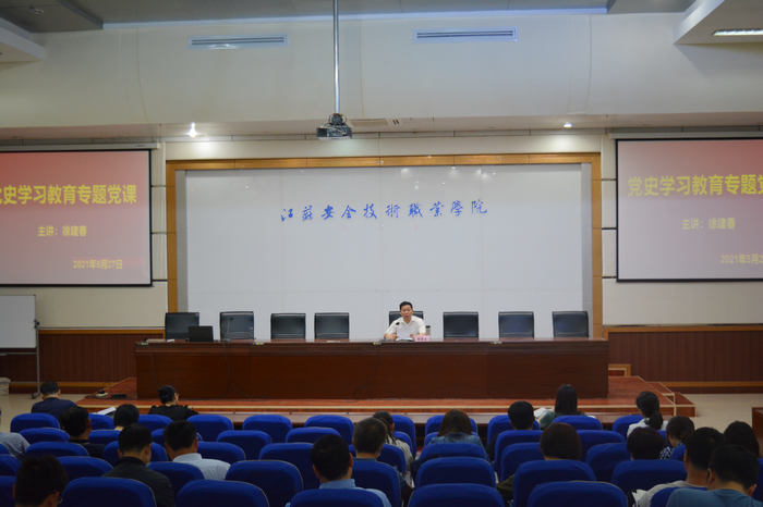 5�27日下午,院长徐建春在贾汪校区B2�106会议室为工业安全与职业健康学院党总支和机关第三党支部全体党员讲授党史学习教育专题党课�