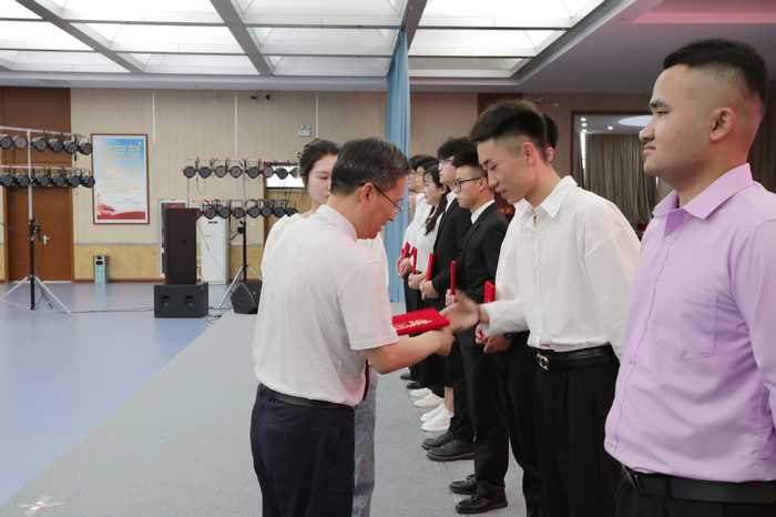 党委委员薛莲宣读了表�2021届优秀毕业生的决定。纪委书记成伯君向优秀毕业生颁发了证书�