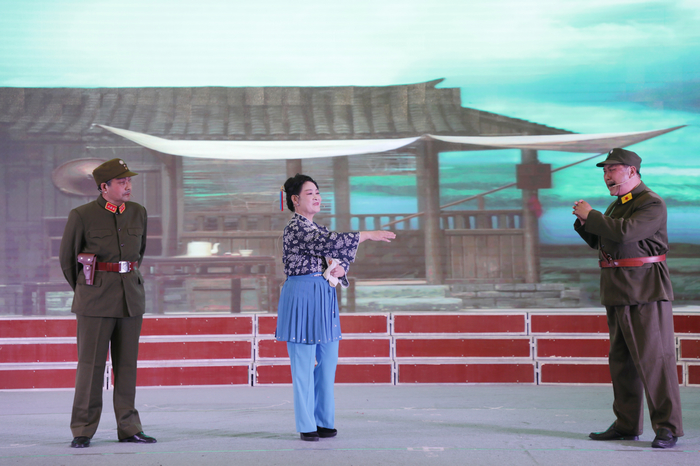 演出在序曲《革命现代戏联展》中拉开帷幕,本场演出戏曲演员的逐一亮相,迎来了现场观众的阵阵喝彩。《平原作战》选场《鱼水情深》再现了�军爱民的鱼水情深,充分彰显党时刻将人民放在心中最高位置的宗旨思想;《红灯记》选场《痛说革命家史》唱出了革命先辈矢志不渝的信念;《江姐》选段《绣红旗》带现场观众回到了激情燃烧的岁月;《沙家浜》选场《智斗》、�智取威虎�》选场《深山问苦》、《奇袭白虎团》选场《飞跃天堑》、《杜鹃山》选场《铁窗训子》等节目生动阐述了中国共产党在革命战争年代的光辉历程,让我们感受到了革命先烈顽强斗争、坚贞不屈的高尚情操�