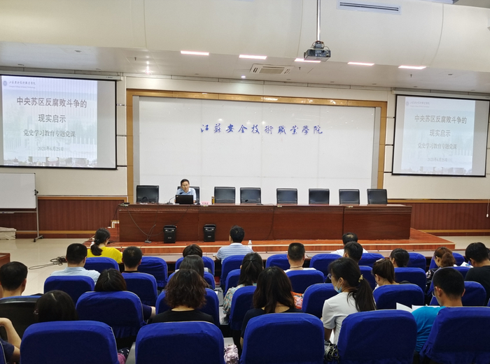 6�25日下午,学院纪委书记成伯君为基础课教学部党总支及机关第二党支部全体党员讲授党史专题党课�