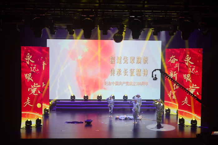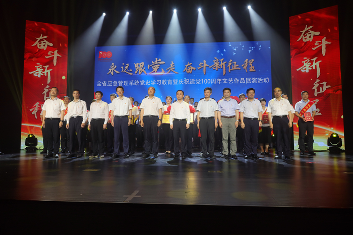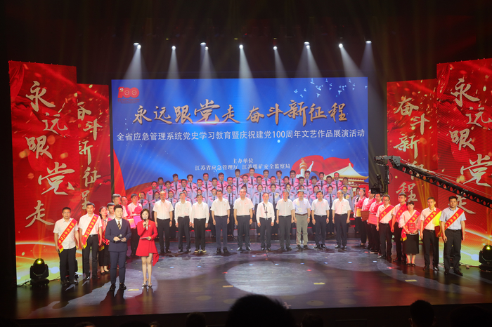 6�18日下午,�永远跟党� 奋斗新征��全省应急管理系统党史学习教育暨庆祝建党100周年文艺作品展演活动在南京紫麓雨花梦想剧场举行。学院党政领导、受表彰的共产党员、优秀党务工作者和先进基层党组织代表前往现场参加活动。学院近70名师生作为演职人员参加了文艺作品展演活动�