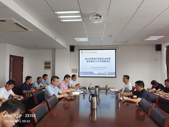 7�12日上午,我院在云龙校�1015会议室召开省应急管理厅校园安全检查隐患整改工作中期推进会,院长徐建春、党委副书记孙健身,副院长任国兴出席会议,各二级学院、相关机关处室等部门安全责任人、安全管理人、安全员参加会议。会议由任国兴主持�