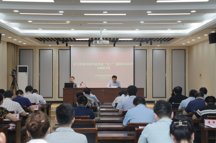 7?/span>16日,我院举办学习贯彻习近平总书记“七一”重要讲话精神专题读书班,邀请中国矿业大学马克思主义学院院长、博士生导师、江苏省委宣传部中国特色社会主义理论宣讲团成员池忠军教授做专题辅导讲座。会议由党委委员、宣传部部长王体民主持,学院党政领导、中层以上干部、思政课教师、辅导员代表等参加学习?/span>