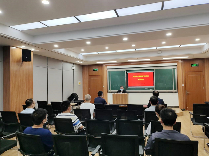 胡老师从全国大学生四六级考试地报名前准备、报名、考前准备、考试培训及疫情防控等方面的工作进行了细致地介绍。会上,与会教师就如何做好考试组织工作与胡老师进行了交流?/span>