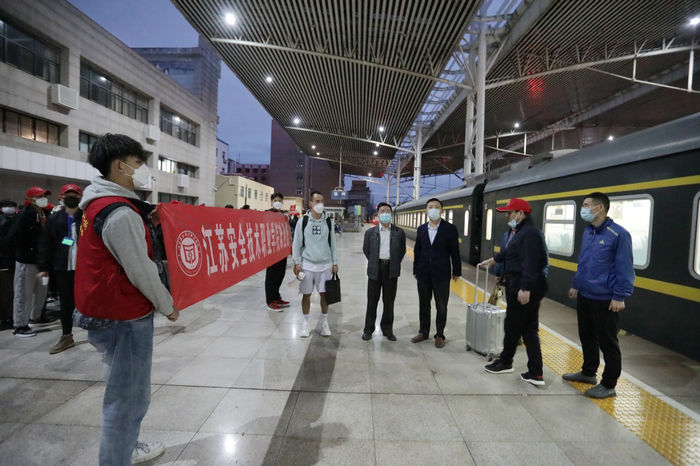 10�11日清�5�30分许,我院新疆班12个班级的同学乘坐Z106次旅客列车,顺利由新疆返回徐州。院长徐建春、党委副书记孙健身、学工处负责人员及相关班级班主任和学生志愿者前往徐州站迎接新疆学子返校开学�