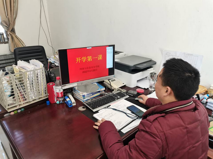 网络与信息安全学院党总支副书记付园上了就网信学院开学及疫情防控工作进行再部署、再落实。针对开学的线上教学,转专业,防诈骗等方面的工作进行提醒,确保校园教学秩序正常稳定运行�
