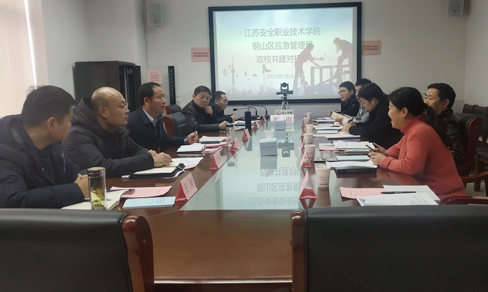 为进一步深化政校融合,助力地方企业发展,服务地方经济建设,1�26日上午,我院院长徐建春、党委委员薛莲等一�6人赴铜山区应急管理局就安全应急培训合作事宜进行洽谈�
