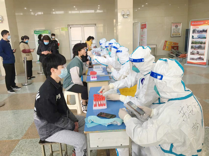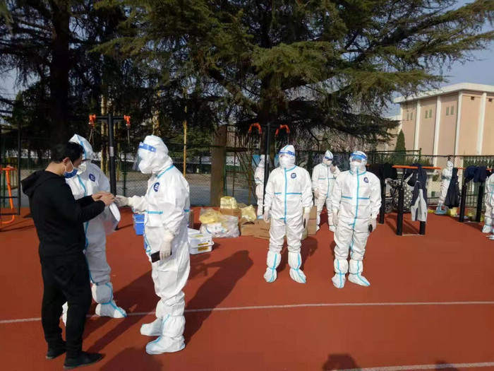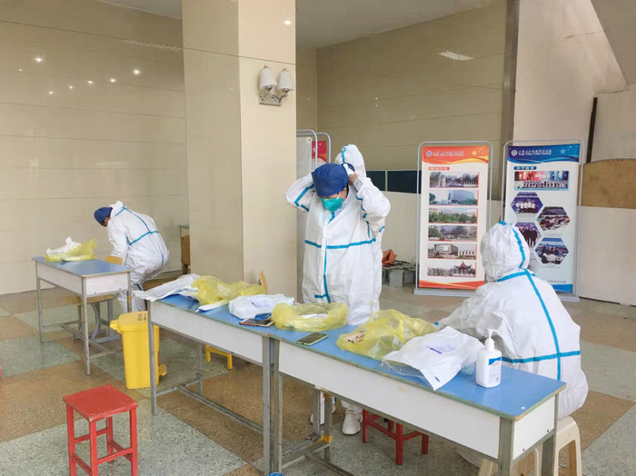 经学院协调,后勤部门与贾汪区相关单位配合,贾汪校区的辅助核酸检测志愿者服务队走上了疫情防控的一线。在这段时间的“慢生活”中,有的人“慢下来”了,而还有很多人继续保持着“加速度”。每天早�7点,这支志愿者分队是这个非常时期的校园中第一批走向岗位的人。在经过医务工作者的无菌操作专业培训,每天在岗的志愿者队伍已经掌握了防护服的规范穿脱、防护装备的穿戴以及核酸检测信息的规范录入�