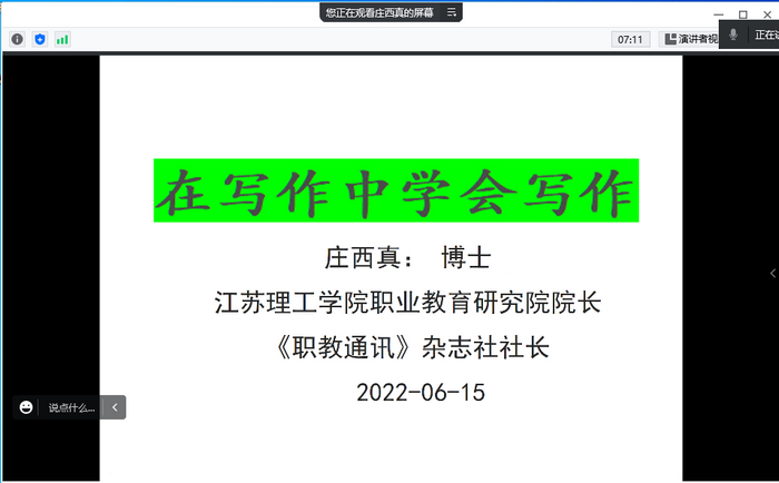 庄西真教授以“在写作中学会写作”为主题,从“模仿写作第一步”、“寻找由头感与悟”、“名不惊人不算数”、“精心规划路线图”、“无米难倒巧主妇”、“妥帖安置字词句”、“重视摘要和尾注”、“打印漂亮投出去”八个方面详细介绍了如何进行论文写作。庄西真教授指出,模仿是学习最重要的途径,要有批判性思维,善于发现问题,并学会从读书中获得写作资料,并从如何拟定论文题目、如何规划论文结构等方面进行了指导。最后,庄西真教授再次强调,多写才是硬道理,并将自己的写作心得和经验与大家分享?/span>
